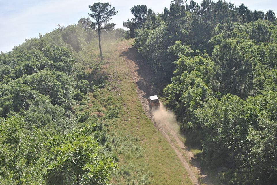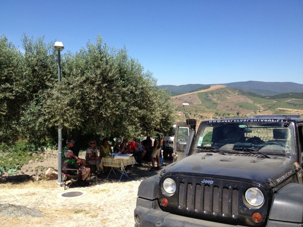 O muito calor que se fez sentir não desanimou nem dissuadiu os “jeepeiros” e obstáculo atrás de obstáculo chegámos finalmente ao local do almoço, no topo de um monte com uma vista fantástica, onde tinhamos um porco no espeto à nossa espera com batatas fritas caseiras a acompanhar. Faltou uma sombrinha, mas não se pode ter tudo 🙂