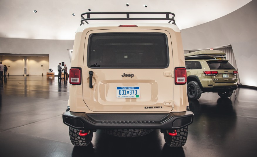 A partir de uma base de um Wrangler Unlimited, na cor Desert Tan, este concept é ligeiramente mais comprido que a sua versão original.