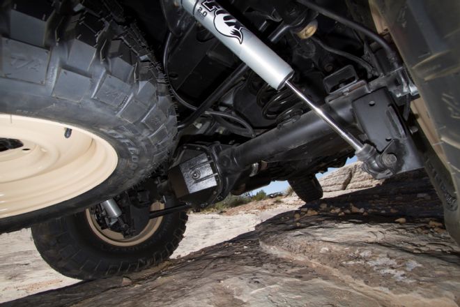 Este Jeep vem com pneus de 35 polegadas BFGoodrich Mud Terrain montados em jantes de aço de 17 polegadas fenomenais. Segundo o artigo original, da Jeep Performance Parts vêm amortecedores Fox racing. Monta também eixos Dana 44 à frente e atrás. Quanto ao motor, recebe o bloco mais conhecido de todos nós, o Diesel 2.8 que equipa os nossos JK em Portugal ao qual é acoplada uma caixa automática de 5 velocidades.